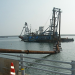 ひとつ前の写真と違い、浚渫した土砂を排砂管を通して陸上に送ることができ、効率のよい作業ができます。