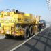 手前の大きな車輛が切削機で、路面を削り取っています。